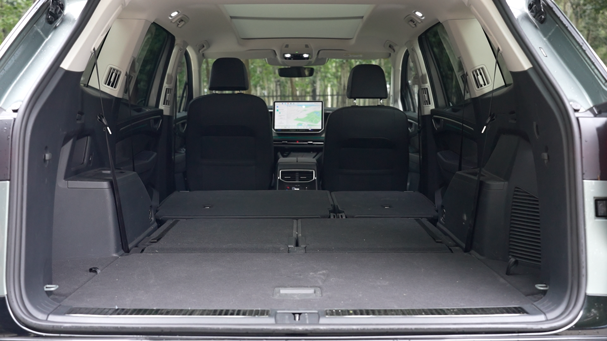 对于“大家庭用车”用户最关心的空间与油耗,全新揽境打出了一套“王炸组合”。超过5.1米的车长带来了高达87.2%的“得房率”,其230mm的二排中央通道,让进出第三排从此告别“狼狈”。更绝的是,即便满员状态下,后备箱依然能从容塞下全家行李,彻底治愈了“坐得下就放不下”的行业顽疾。